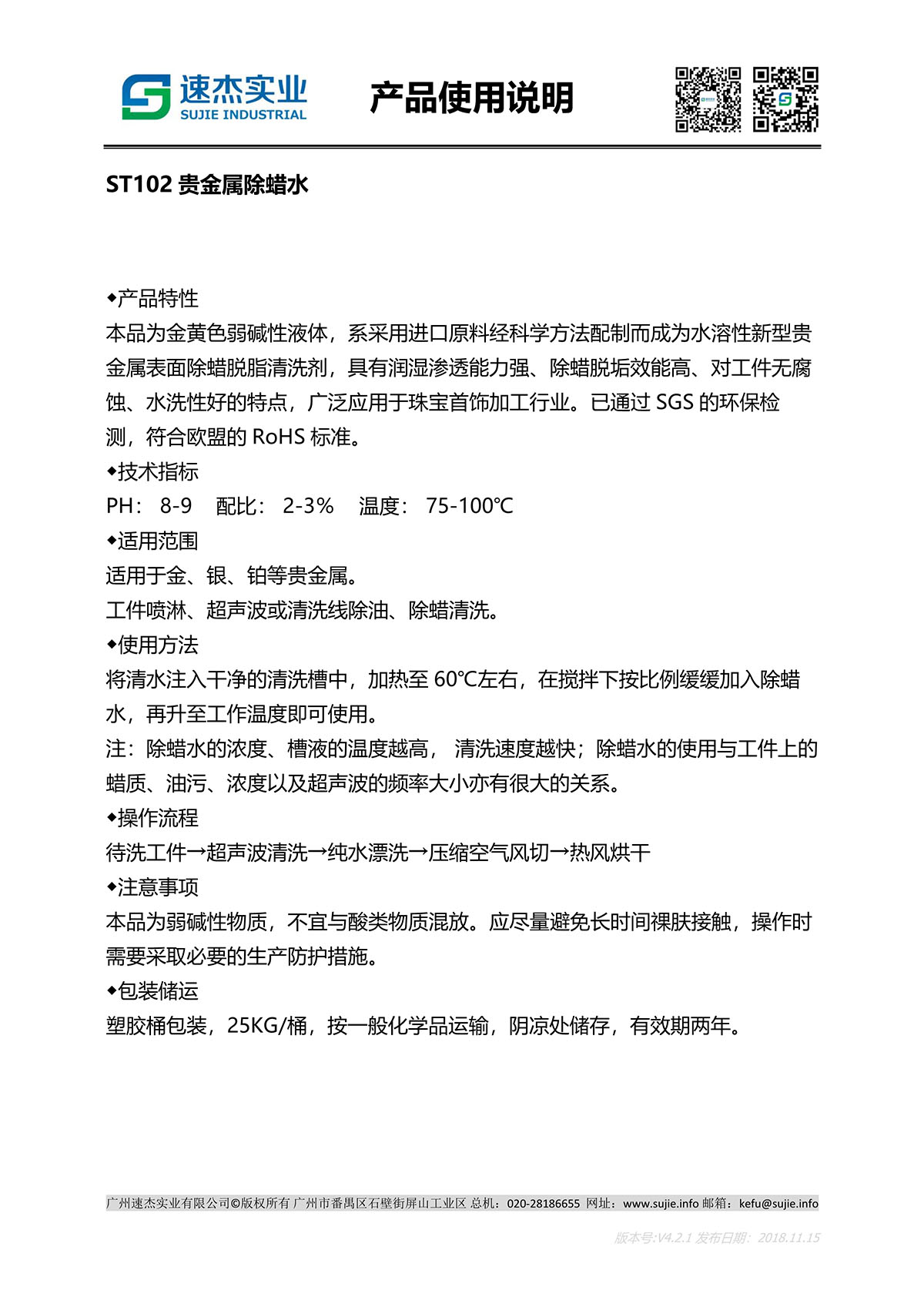● 除蜡能力强,对基材表面残留蜡质清洗快