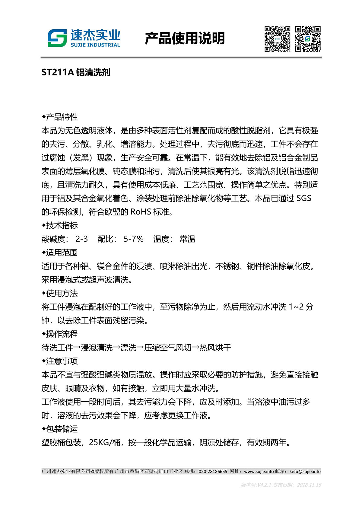 ● 清洗能力强,对铝材表面及内孔油污清洗快