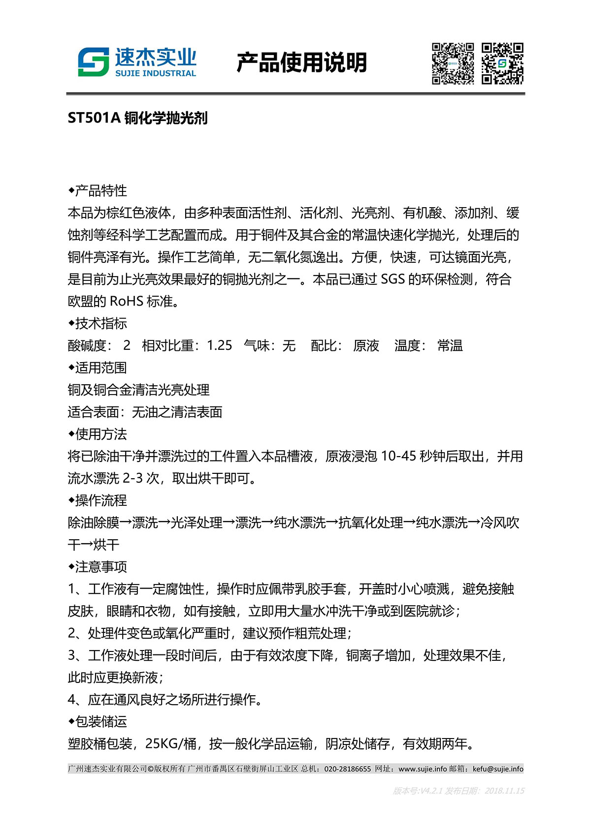 用于铜及合金等化学抛光处理