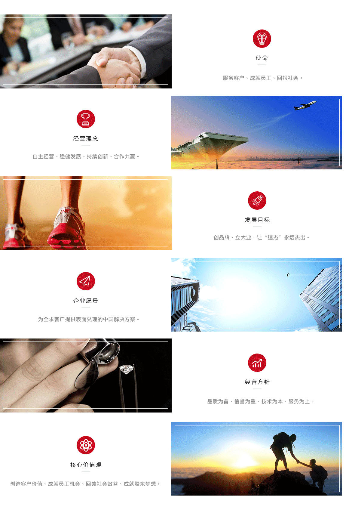 速杰实业本着科技创业、品质立业、服务守业的原则,立足与国内外知名科研院所合作,不断向尖端环保型表面处理材料领域进军。致力于提供最优秀品质的产品和完善的服务,为客户创造最大的价值是我们永远不变的目标。